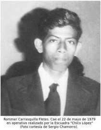 Rommel Trinidad Carrasquilla Fletes, nace el 27 de mayo de 1956. Estaba organizado en las filas del FSLN desde 1976. Trabaja un tiempo bajo la responsabilidad de Aníbal Espinales20 y luego forma parte de una célula integrada por Alfonso Monterrey “Pocho”, –quien fue asesinado en la Carretera a León– y Leonardo Chamorro “Pablo”.
