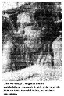 Queremos honrar a estos luchadores recordando a una mujer humilde y valiente que forma parte de este torrente de amor y lucha por la justicia: Lidia Maradiaga Cáceres, asesinada un 22 de abril de 1966 en Santa Rosa del Peñón, León. Tenía 24 años, tres niños de entre 2 y 6 años, y estaba embarazada.